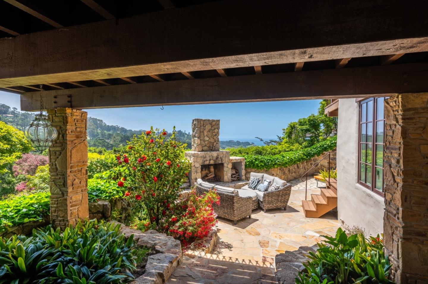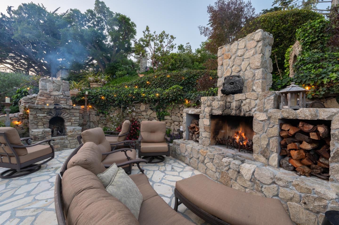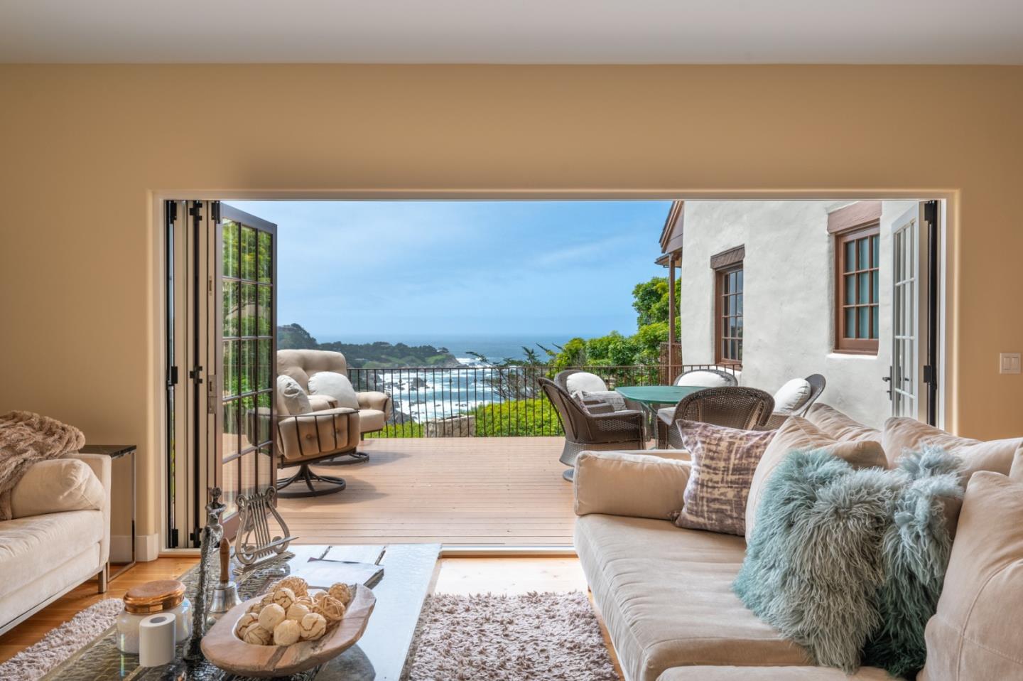 "Stonewater" is renowned for being one of the most well designed and perfectly situated homes in the Carmel Highlands. Captivating views of Wildcat Cove can be seen throughout the property, with multiple sets of nano doors that embrace indoor - outdoor living, all while capturing dramatic views of the ocean. The home, originally constructed in 1919, maintains its character and charm while enjoying a contemporary interior that perfectly blends timeless design with convenience. Within the main home, there are 4 bedrooms and 3.5 bathrooms. Dueling primary suites on each of the main levels provide for flexibility of lifestyle. In addition to the main living areas, there is an attached, but private, suite that is ideal for guests. It enjoys its own access, and contains a bedroom and bathroom, and is completed with its own fireplace. An entertaining paradise, the property lives true to its namesake with stone walkways that frame a multitude of private outdoor spaces, including a small vineyard. A rarity in the Highlands, this property is a short distance to the esteemed Highlands Inn and its restaurant, which removes the necessity to drive for dinner and drinks. There are a number of homes in the Carmel Highlands, but a very rare few that lay claim to all that is 151 Highlands Drive