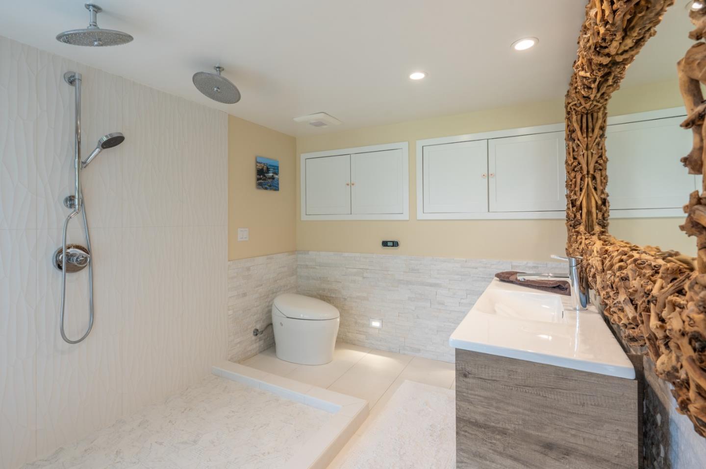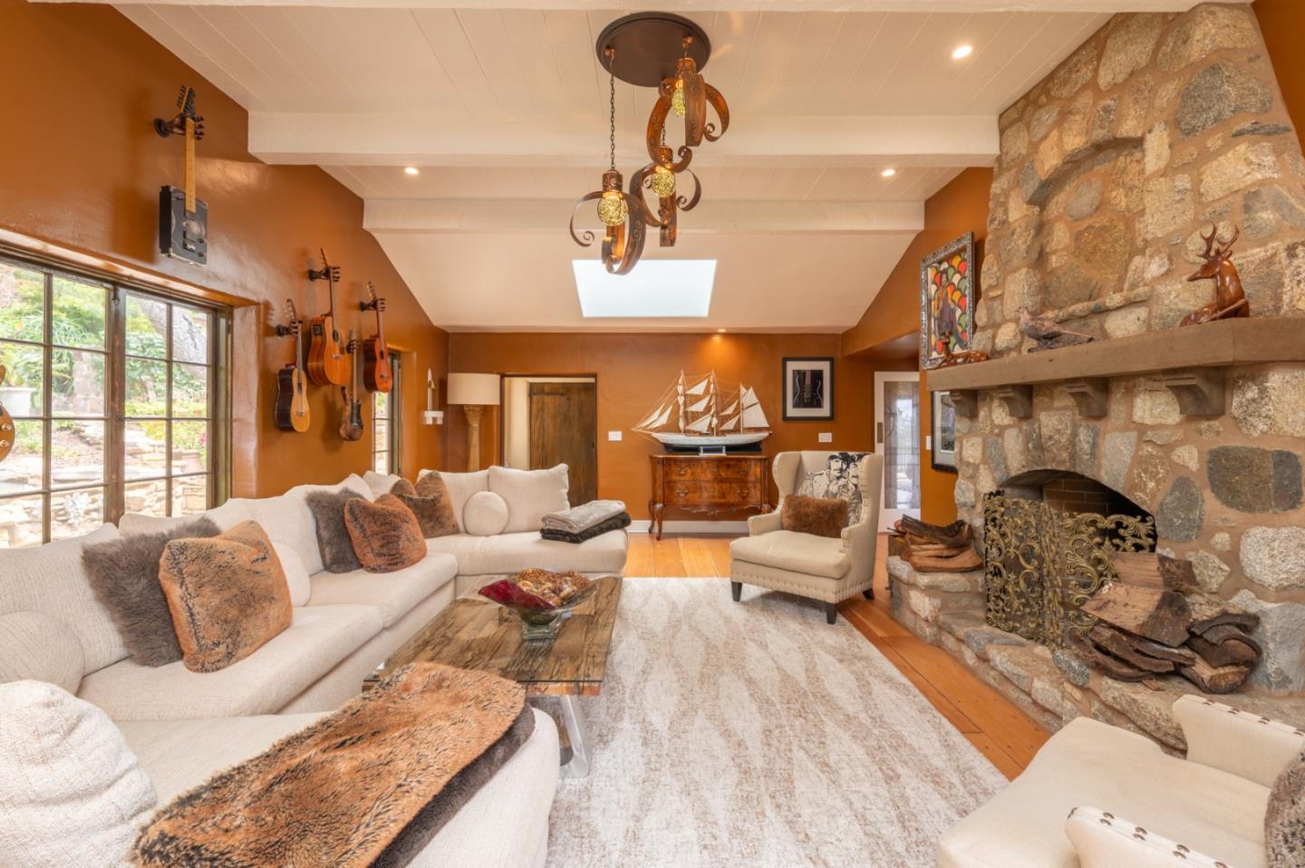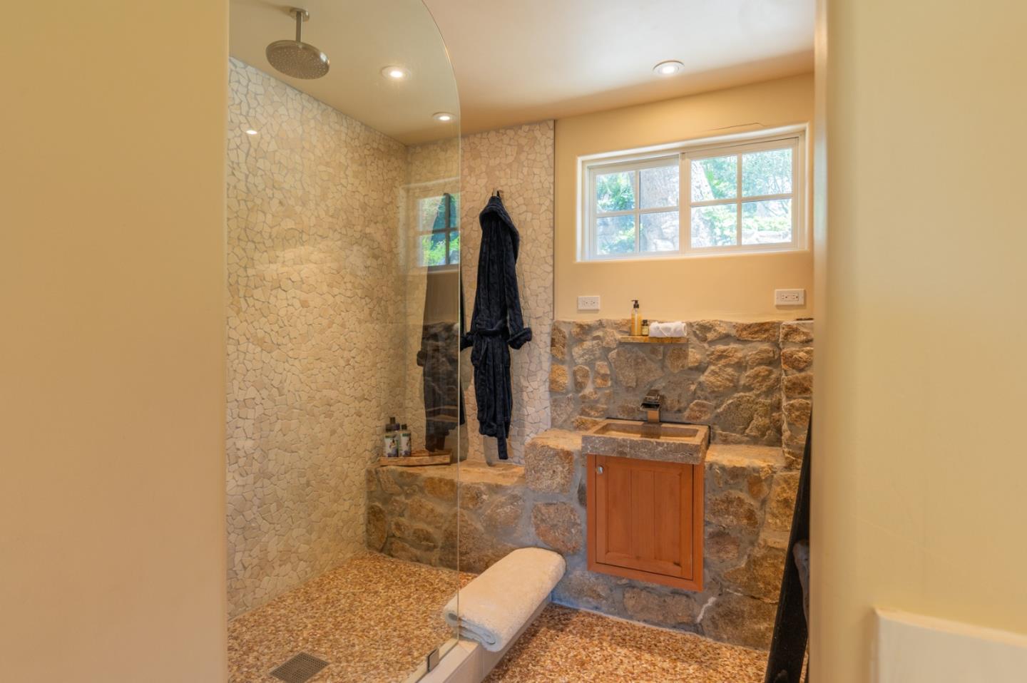 "Stonewater" is renowned for being one of the most well designed and perfectly situated homes in the Carmel Highlands. Captivating views of Wildcat Cove can be seen throughout the property, with multiple sets of nano doors that embrace indoor - outdoor living, all while capturing dramatic views of the ocean. The home, originally constructed in 1919, maintains its character and charm while enjoying a contemporary interior that perfectly blends timeless design with convenience. Within the main home, there are 4 bedrooms and 3.5 bathrooms. Dueling primary suites on each of the main levels provide for flexibility of lifestyle. In addition to the main living areas, there is an attached, but private, suite that is ideal for guests. It enjoys its own access, and contains a bedroom and bathroom, and is completed with its own fireplace. An entertaining paradise, the property lives true to its namesake with stone walkways that frame a multitude of private outdoor spaces, including a small vineyard. A rarity in the Highlands, this property is a short distance to the esteemed Highlands Inn and its restaurant, which removes the necessity to drive for dinner and drinks. There are a number of homes in the Carmel Highlands, but a very rare few that lay claim to all that is 151 Highlands Drive