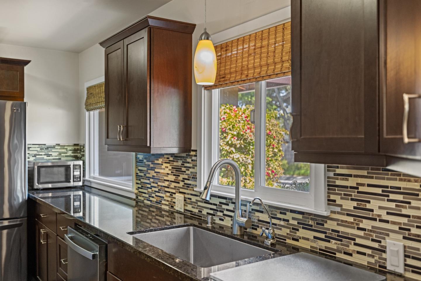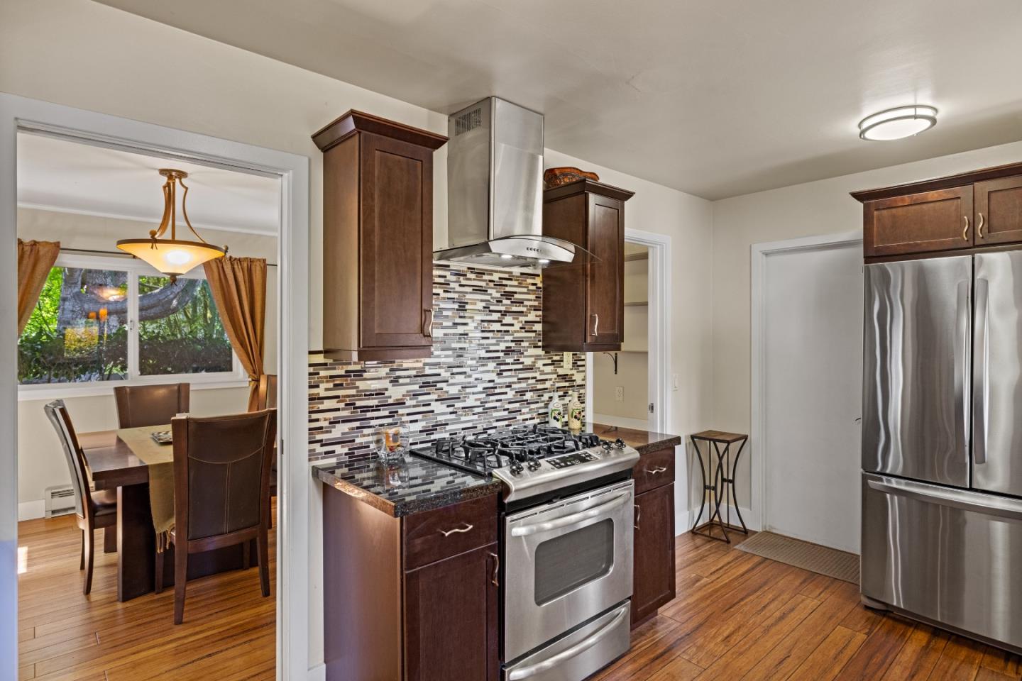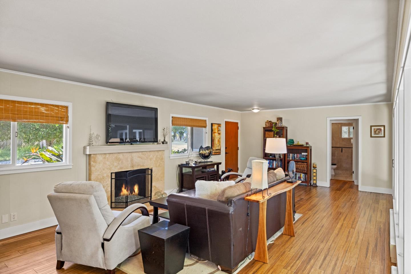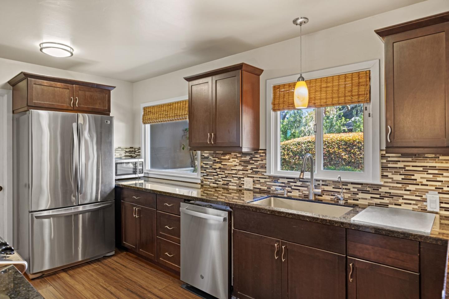 Welcome to your sanctuary in Monterey! A spacious two-bedroom, one-bath home offers an impressive 1303 square feet of living space adorned with updated green features throughout. Embrace sustainable living with solar, updated dual pane windows, zonal electric heat while reducing energy costs in comfort. Cozy up by the fireplace in the spacious living room, complimented by warm bamboo floors with a touch of modern elegance. Stainless-steel appliances and granite countertops make up the kitchen with a passthrough bar open to the living room. The backyard boasts a serene oasis with tranquil fountain and fire pit or unwind in the custom-built infrared sauna. A bonus room off the kitchen gives space to explore your hobbies along with an indoor laundry area and ample storage. Rarely available water credits are included for future expansion and value. No detail was overlooked in this meticulously updated home. Don't miss out on your opportunity to own a piece of green paradise in Monterey!